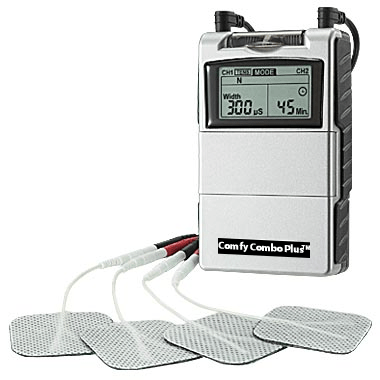 The ComfyCombo Plus®is our NEW upgraded version of our twin stim TENS and EMS unit. It features 5 TENS modes, 2 EMS modes and additional 24 preset programs. The pulse width, pulse rate, ramp time, on time, off time and timer are fully adjustable. The user can identify if it is a TENS or EMS mode by the reading on the top of LCD.
