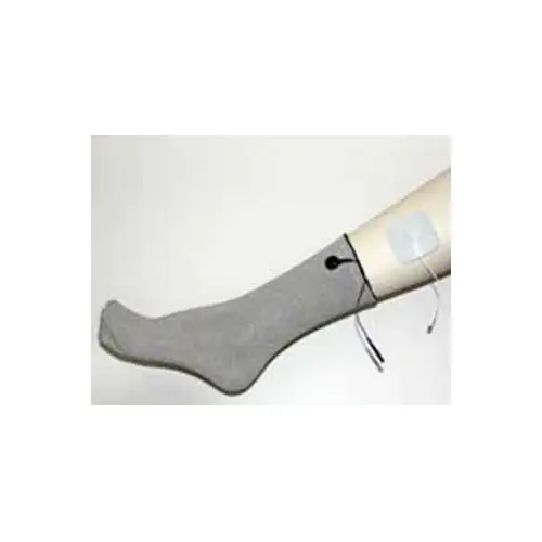 The Conductive Sock is ideal for providing 360° of treatment coverage to the entire foot and ankle. It increases blood flow and is extremely effective for treating all sorts of foot and ankle disorders such as Arthritis, Diabetic Foot Pain, Muscular Sprains and a host of other foot, heal and ankle injuries. The stretchable knitted fabric allows for a perfect, snug, one-size-fits-all universal sock that promotes excellent blood circulation, swelling reduction and pain management