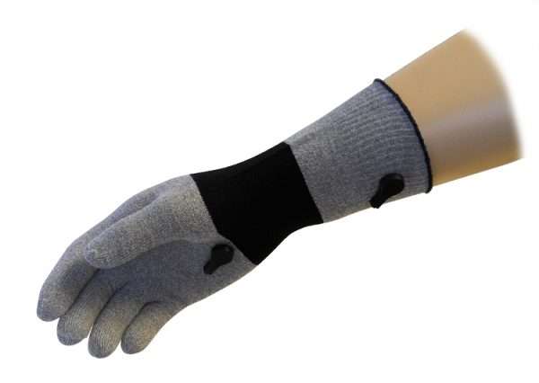 The Conductive Stimulation Glove is perfect for treating the entire hand and wrist. It is ideal for treating patients with Arthritic and RSD (Reflex Sympathetic Dystrophy) conditions within their hands as well as Carpel Tunnel Syndrome conditions within their wrists. The stretchable knitted fabric allows for a perfect snug one size fits all universal/ambidextrous glove that promotes excellent blood circulation, swelling reduction and pain management.